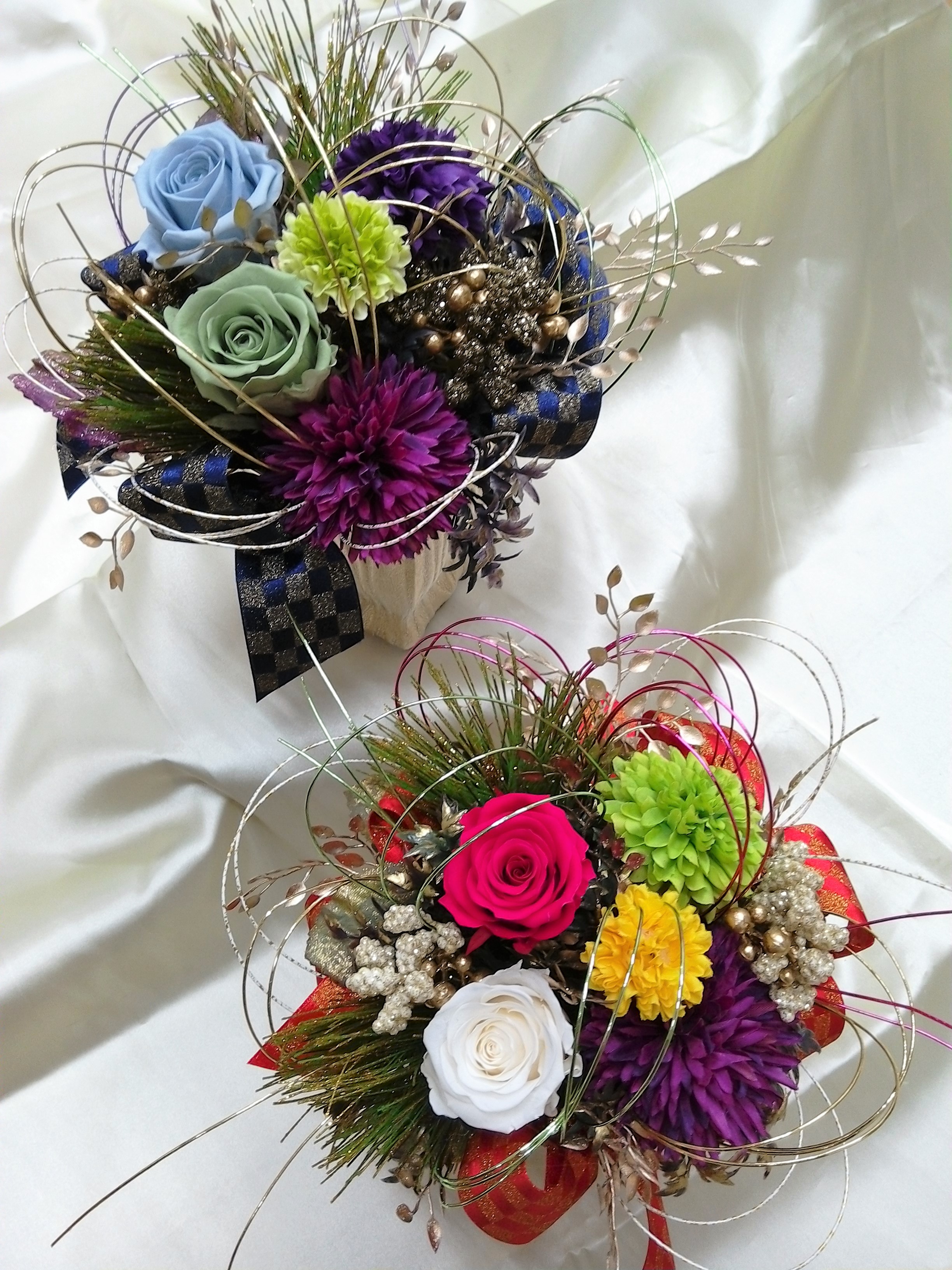 【2017・12月】プリザとアーティフィシャル水引アレンジ レッスンお知らせ Twitter Facebook はてブ Pocket LINE 2021.11.04 2019.02.10 12月 7(木) 10時~ 12月13日(水) 10時 12月16日(土) 2時~ 参加費3800円(税別) 花、リボン、水引の色はお選びいただけます。 ご予約、お申し込みは電話または店頭にて! 数に限りがありますので材料が無くなり次第受付を終了させていただきます。 ※お申し込み後のキャンセルについては花材をお引き取りいただいております。※レッスン後追加で花材のみご利用のお客様は10%offとさせていただきます。