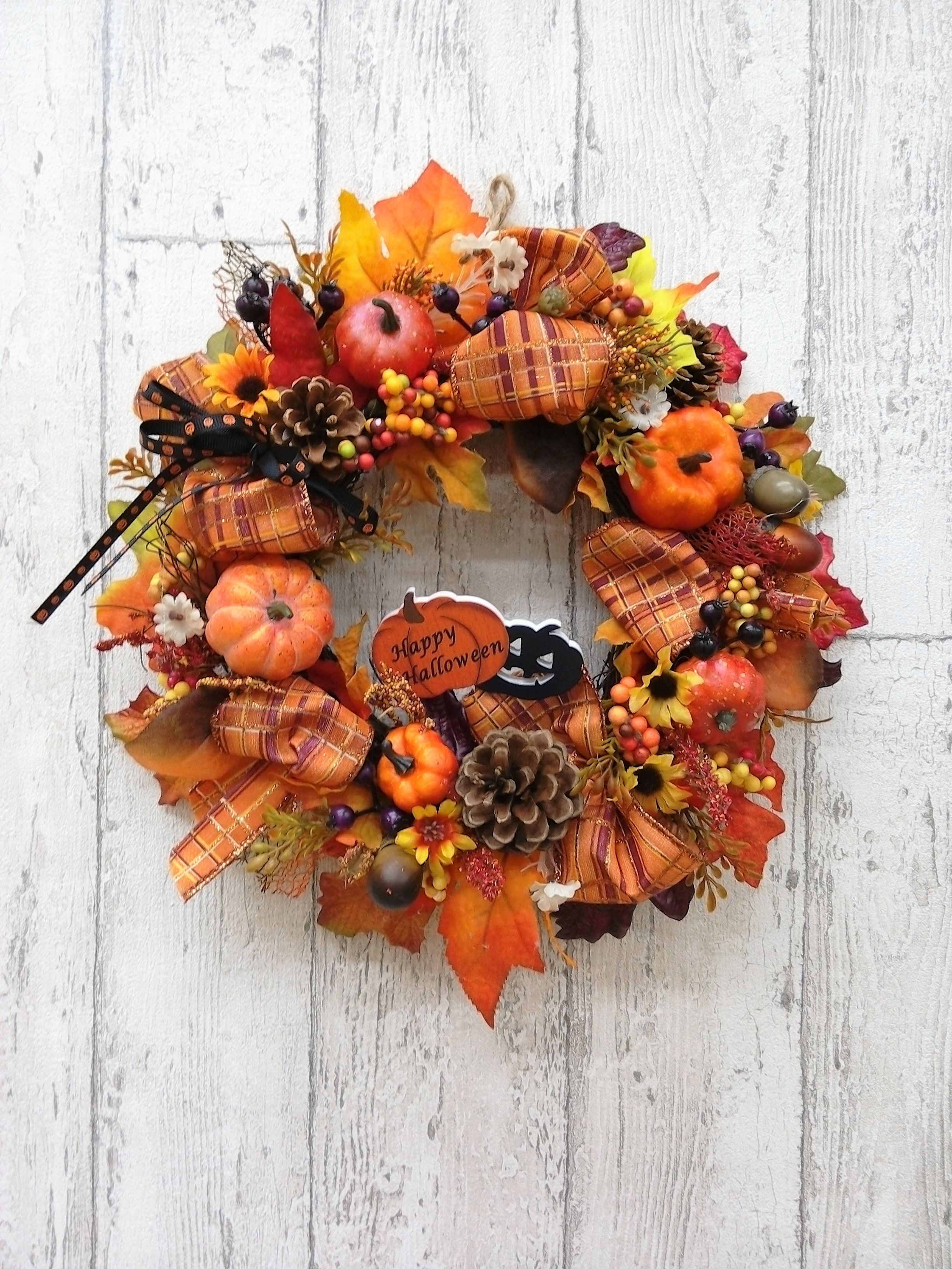 【2017・9月】ハロウィンリース レッスンお知らせ Twitter Facebook はてブ Pocket LINE 2021.11.04 2019.02.10 9月23日(土) 2時~ 参加費3300円(税別) 昨年、店頭で人気だったハロウィンリースです。 ご予約、お申し込みは電話または店頭にて! 数に限りがありますので材料が無くなり次第受付を終了いたします。 ※お申し込み後のキャンセルについては花材をお引き取りいただいております。※レッスン後追加で花材のみご利用のお客様は10%offとさせていただきます。