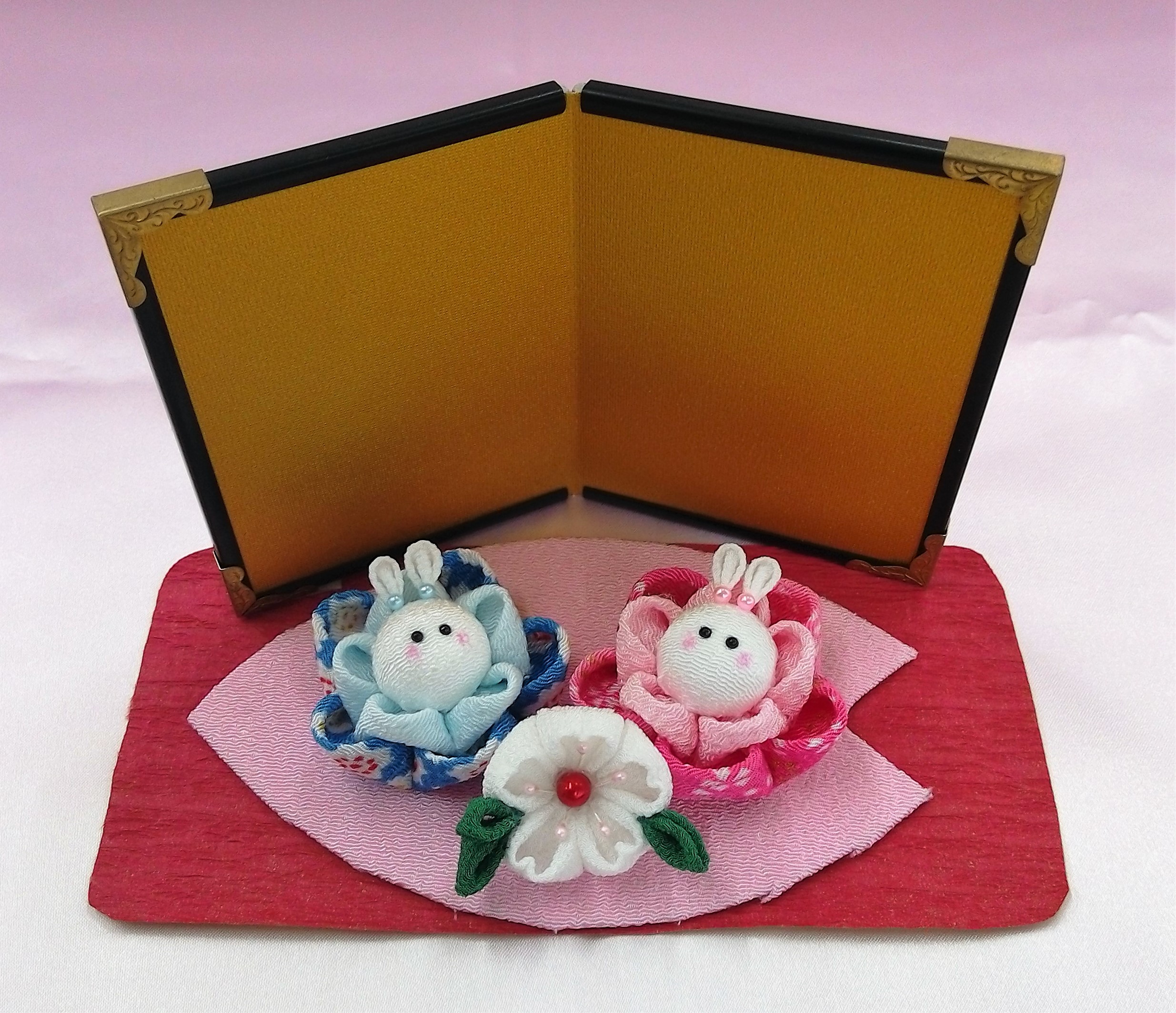 【つまみ細工】うさぎの雛飾り レッスンお知らせ Twitter Facebook はてブ Pocket LINE 2020.01.09 2019.12.28 参加費(ドリンク付) 1500円 ◆日程・時間 1月16日(木)、25日(土)、30日(木)、2月1日(土) 午前の部10:00~ 午後の部1:30~ ※午前の部は受付終了いたしました。午後の部は予約受付中です。 ※予約制です。 ※クリアケース付きになります。金屏風は含まれません。 ※画像はサンプルです。