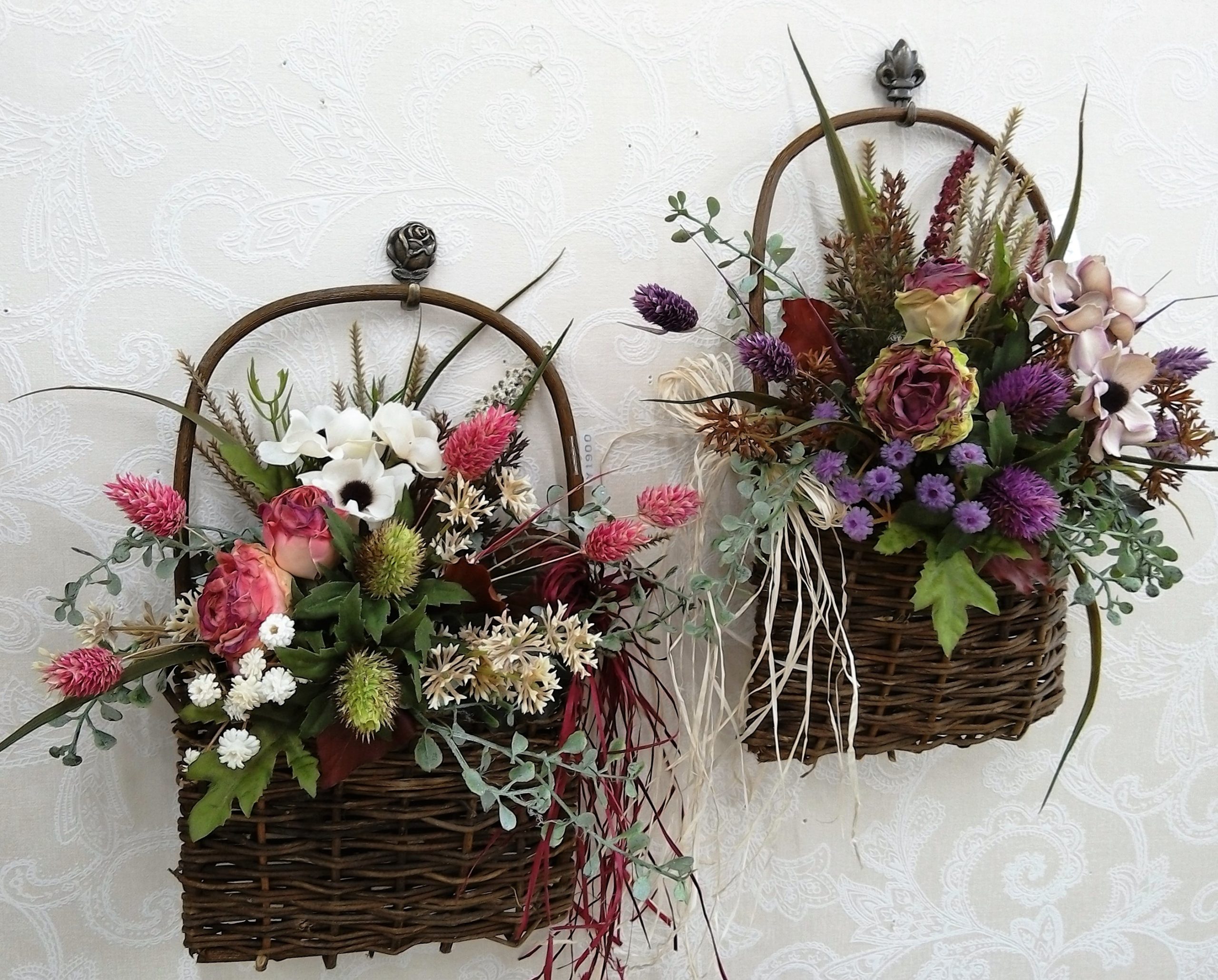 ドライタッチローズのミニブーケと壁掛けバスケット