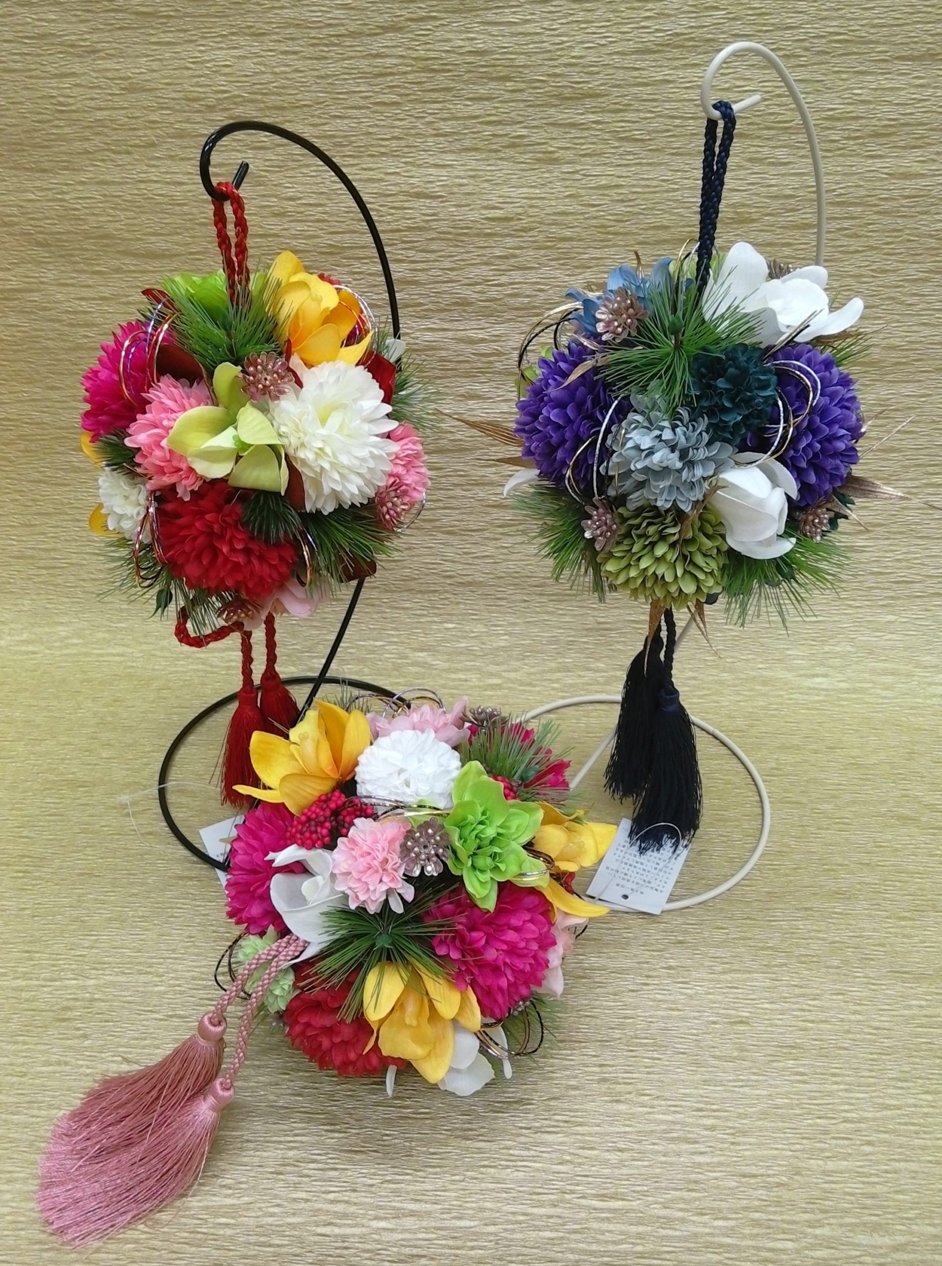 【2021年12月】スポットレッスン レッスンお知らせ Twitter Facebook はてブ Pocket LINE 2021.11.18 カラフルボールブーケ ~好きな色を選んで~ 参加費 3800円(税込) ◆日程・時間12月4日(土)午後2:00~12月11日(土)午後2:00~※予約制です。ご予約は本店へ電話または店頭でお声がけください。 ※ベースになるボールを作るところからレッスンします。花材の色はレッスンの際に選んで組み合わせて作成となります。 ※平日にレッスンご希望の方はお気軽にご連絡ください。 ※お申し込み後のキャンセルについては、花材をお引き取りいただいております。